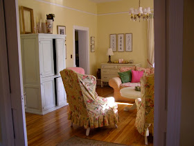 If you live with an Addiction to Decorating, like I happily do, well, you know the drill...you start with ONE room...and then, the next thing you know, you have done 5 rooms and the color scheme of the house has undergone a complete transformation. Such is the case with our Pink Dining Room.